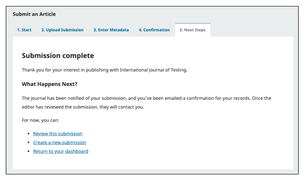 Step 5 confirms that your submission is complete and informs you about the next steps.