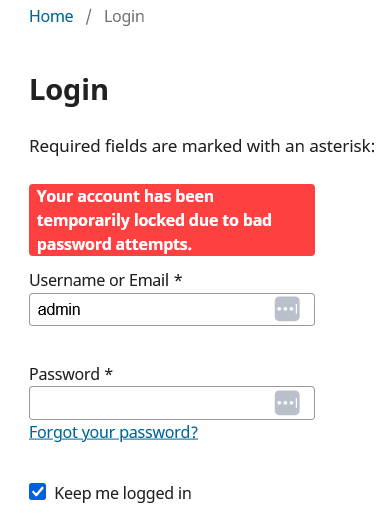 Attempting to log into the journal with the wrong credentials too many times will lock the account. This is a security device to prevent malicious users from trying to gain access to the account. If the incorrect details are inputted more than 5 time in quick succession then account will be locked and the screen will display a message to confirm this.