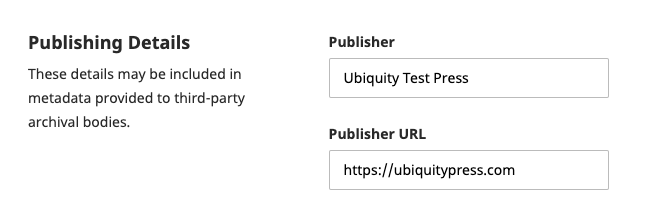 Adding a URL here will result in the publisher’s name in the footer of the frontend website being hyperlinked to your external website.