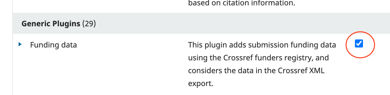 ) can be enabled and disabled on a journal-by-journal basis. A Journal Manager is able to decide which plugins they want to have on/off for a specific journal, simply by ticking/unticking the relevant setting: