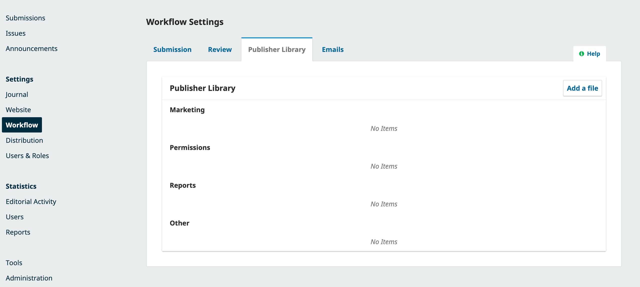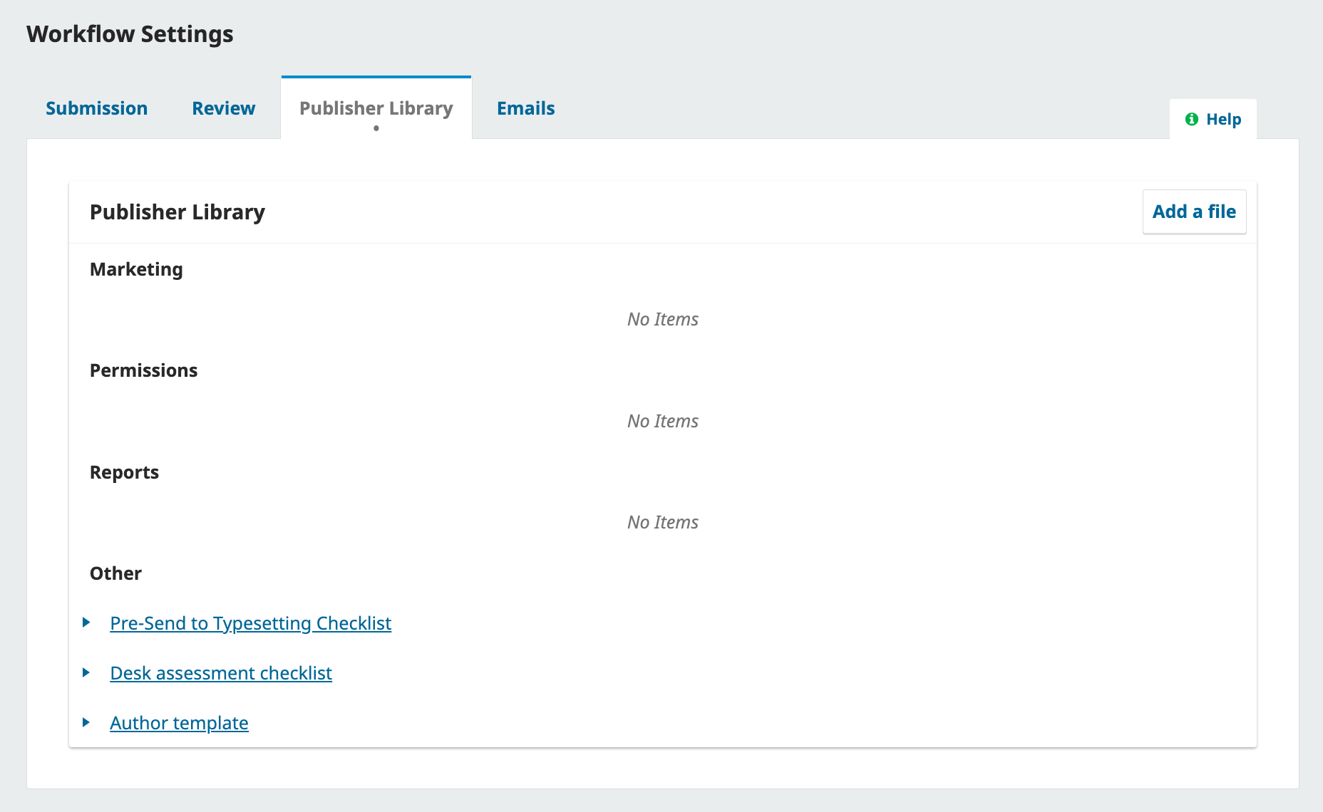 The files will then appear in your Publisher Library and will be available to editors and authors as part of their submission workflow (see here for user access to the files)