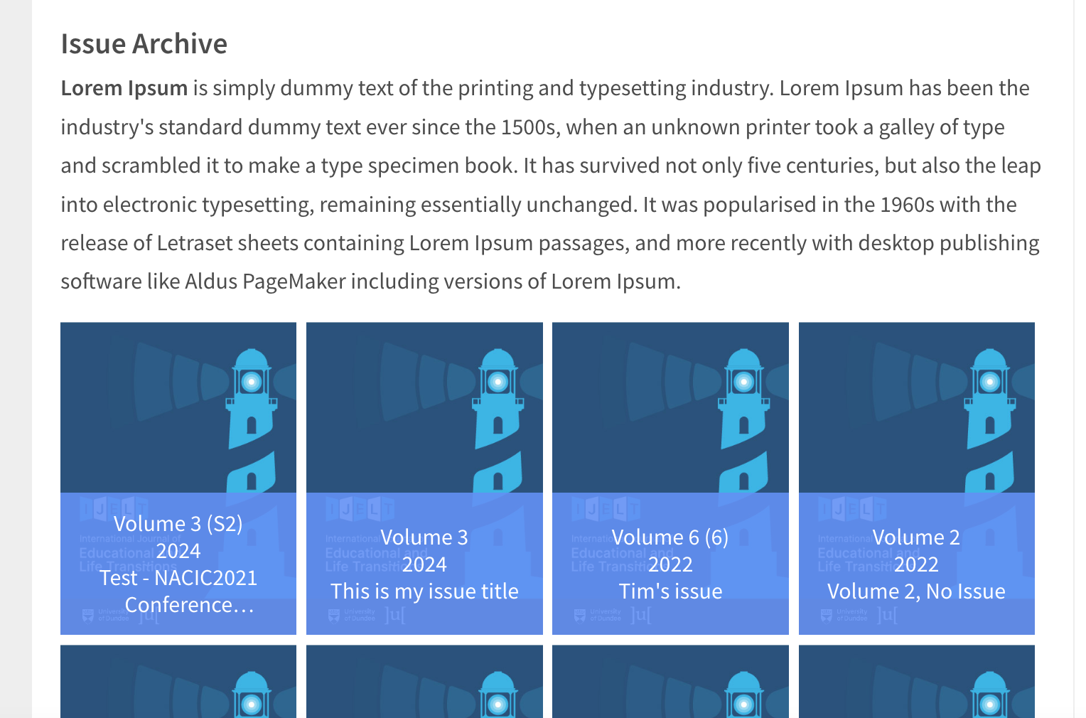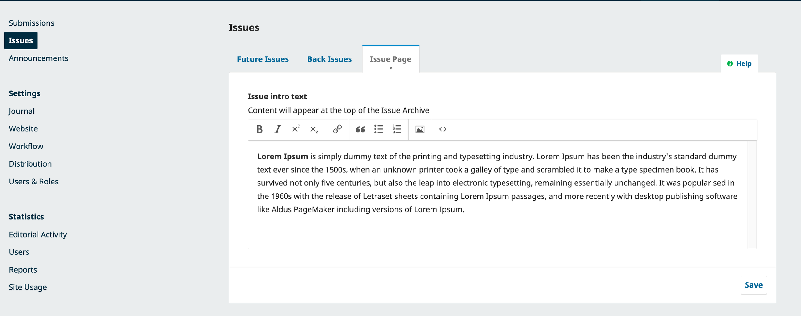 To add text to this page, access OJS and then navigate to Issues > Issue Page