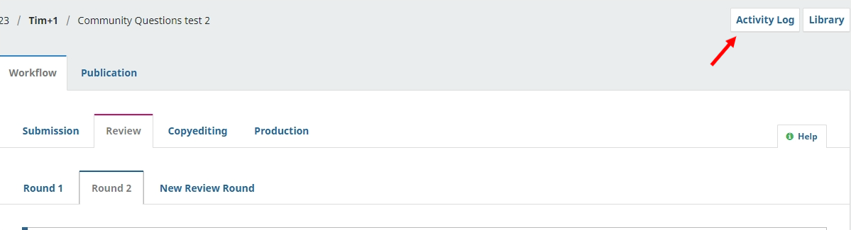 Alternatively, you can also view this record when you have already accessed a submission, you will find the button for the ‘Activity Log’ in the top right-hand corner of the page.