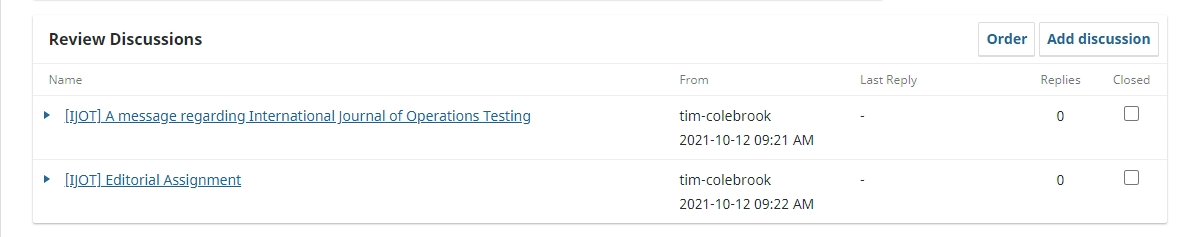 If you have multiple editors working on a single submission, you can contact each other through the OJS and track your messages either by leaving notes in the submissions ‘Activity Log’, or by starting a discussion thread.