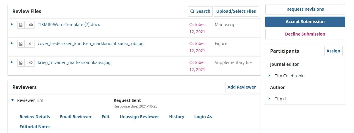 Sometimes, you may need to send out your own follow-up reminder, in this case you can send an email to the reviewer through the ‘Reviewers’ section in the ‘Review’ tab of the submission.This section will show all of the reviewers currently invited and the stage at which they are at.