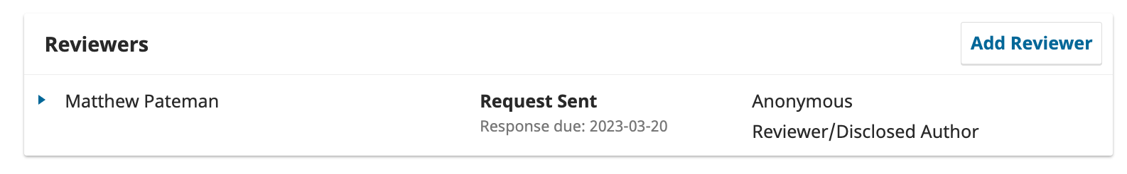 When a reviewer has been invited to a review task their name will appear in the Reviewers