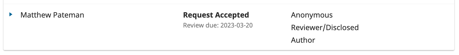 If the reviewer has accepted the review task but not yet submitted their feedback, then the status will display as Request Accepted