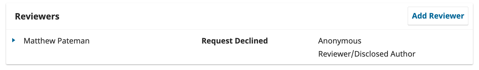 If the reviewer declines the invitation to complete the review then the status will show that they have submitted this decision as Request Declined