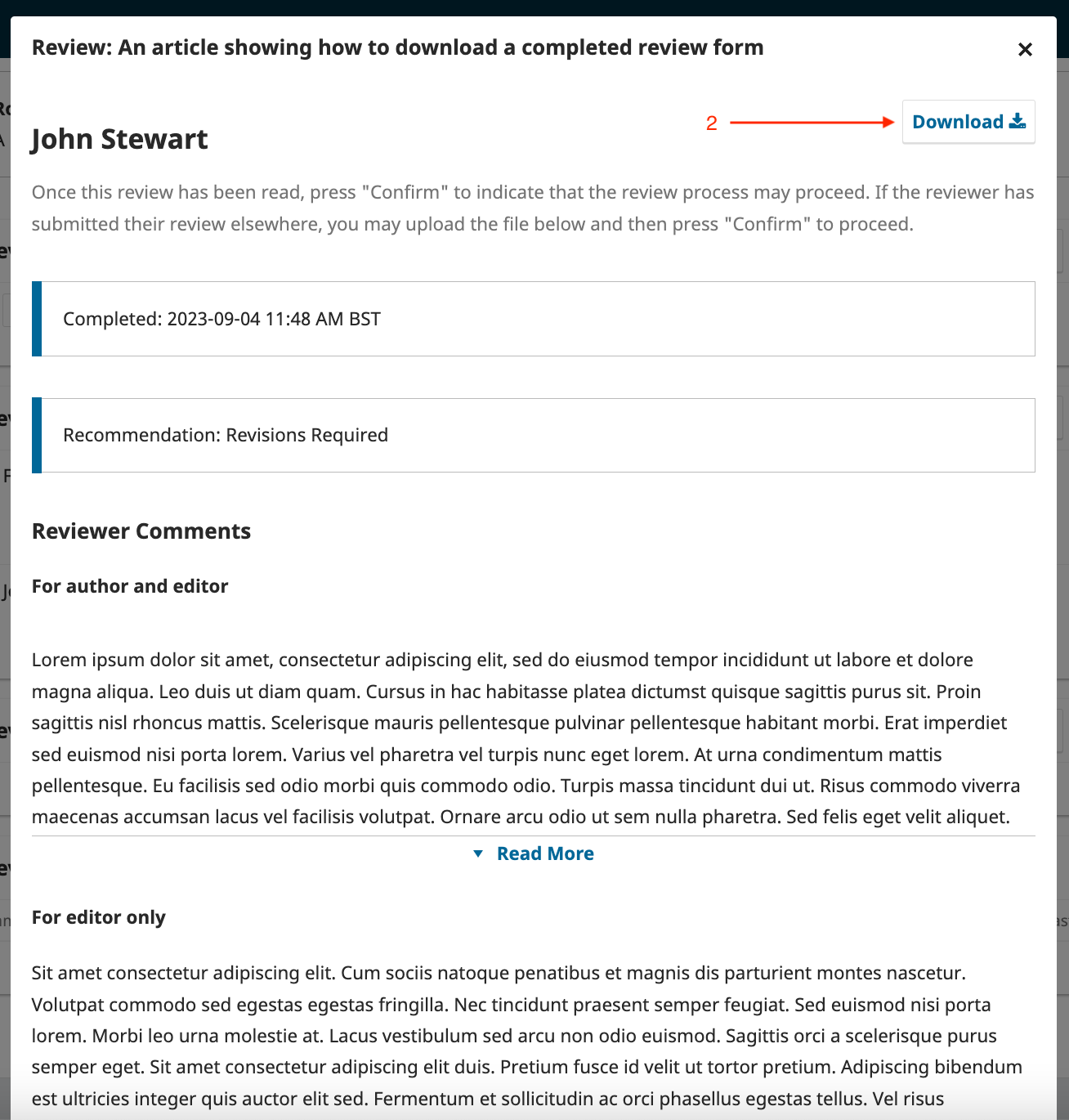 Once a peer review task has been completed the information will be available to the editor via the Reviewers section of the submission display. This can be read, in full, within the OJS system, however, if the editor needs to export the review so that it can be read outside of the journal system then this is also possible via the below*. The peer review form will be exported in PDF format.