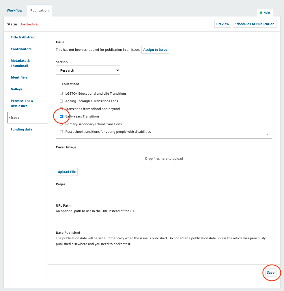 Once a collection has been setup by the Journal Manager, all live collections will appear in the Publication > Issue